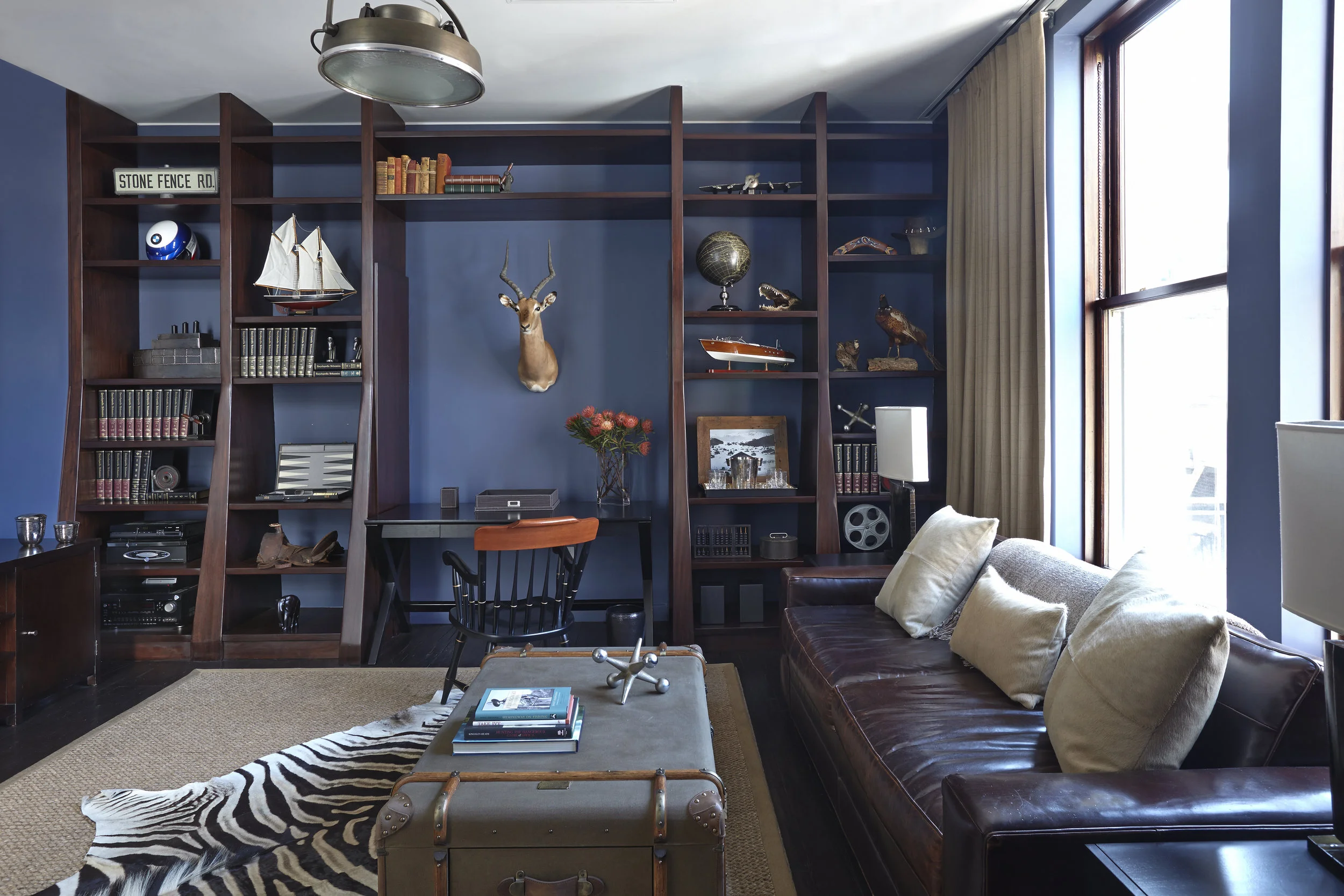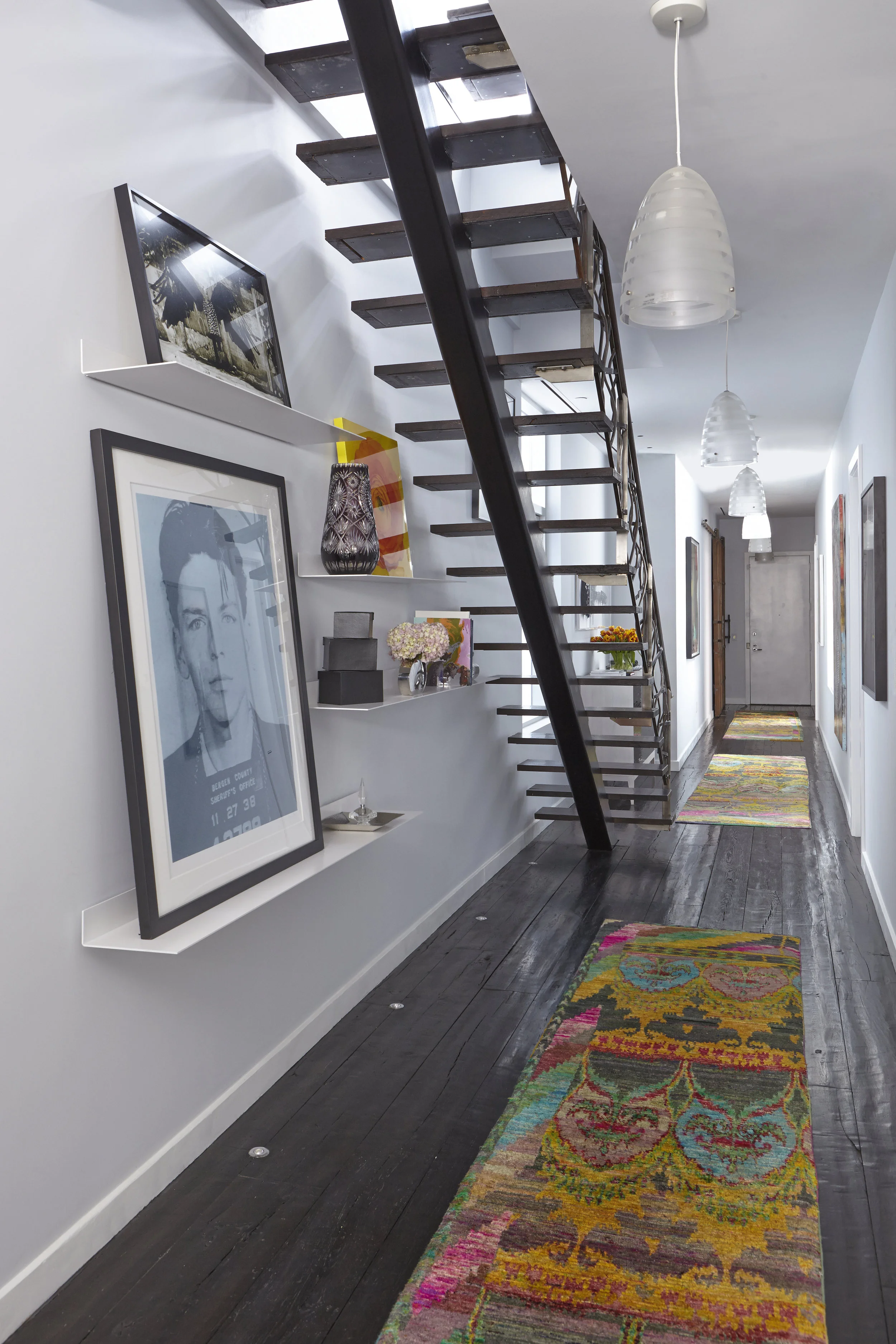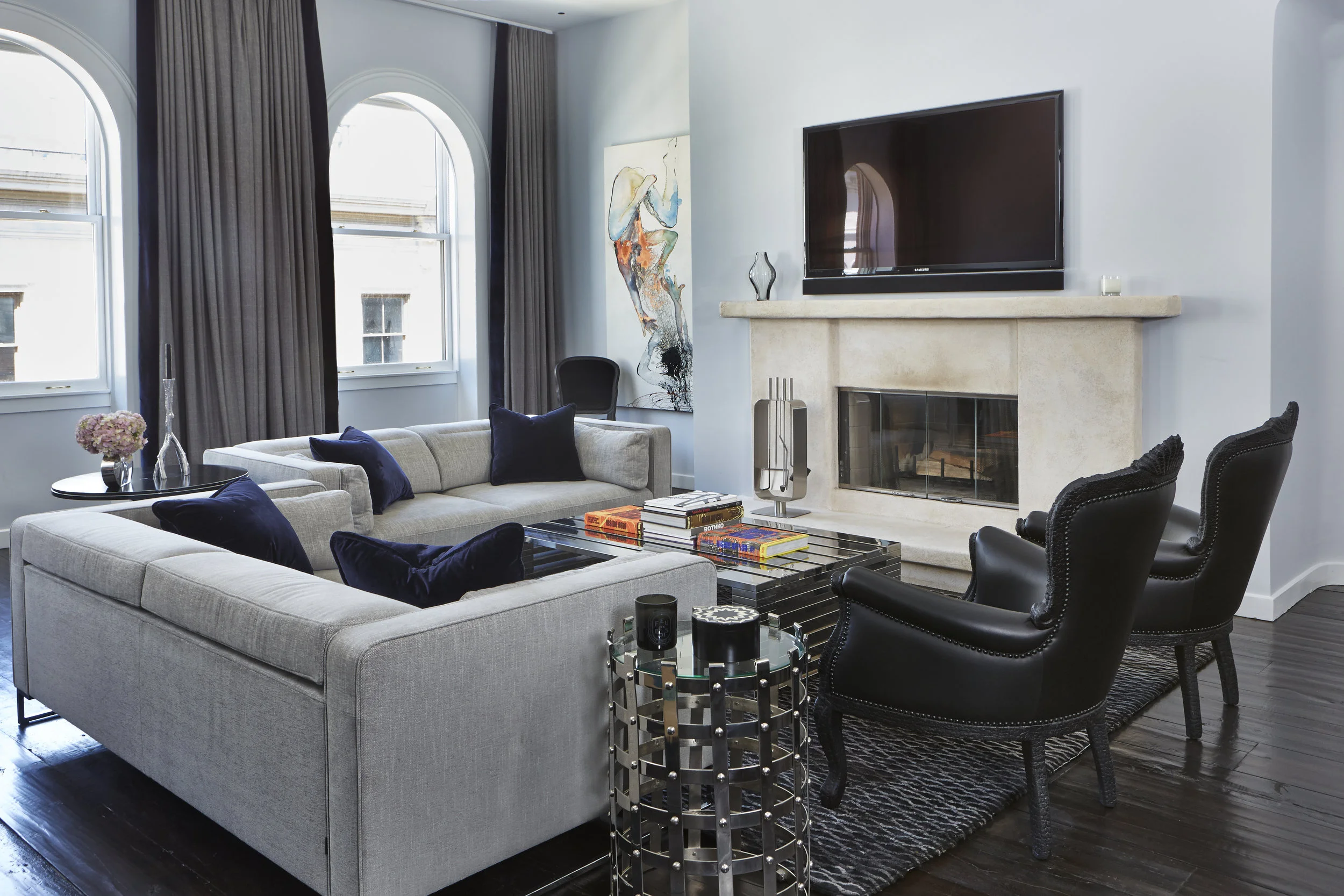This apartment was a complete overhaul. Out went everything but the floors and the stairs. He wanted manly; she glitz. We think we found the perfect balance.