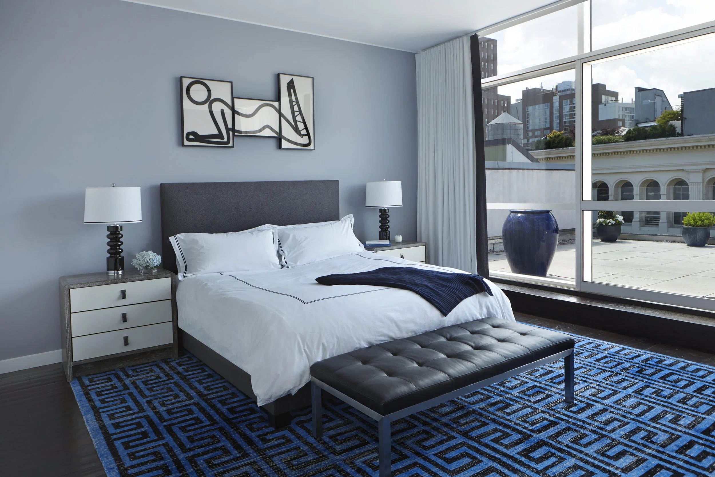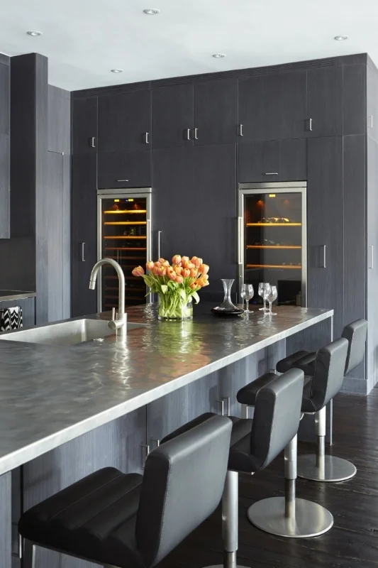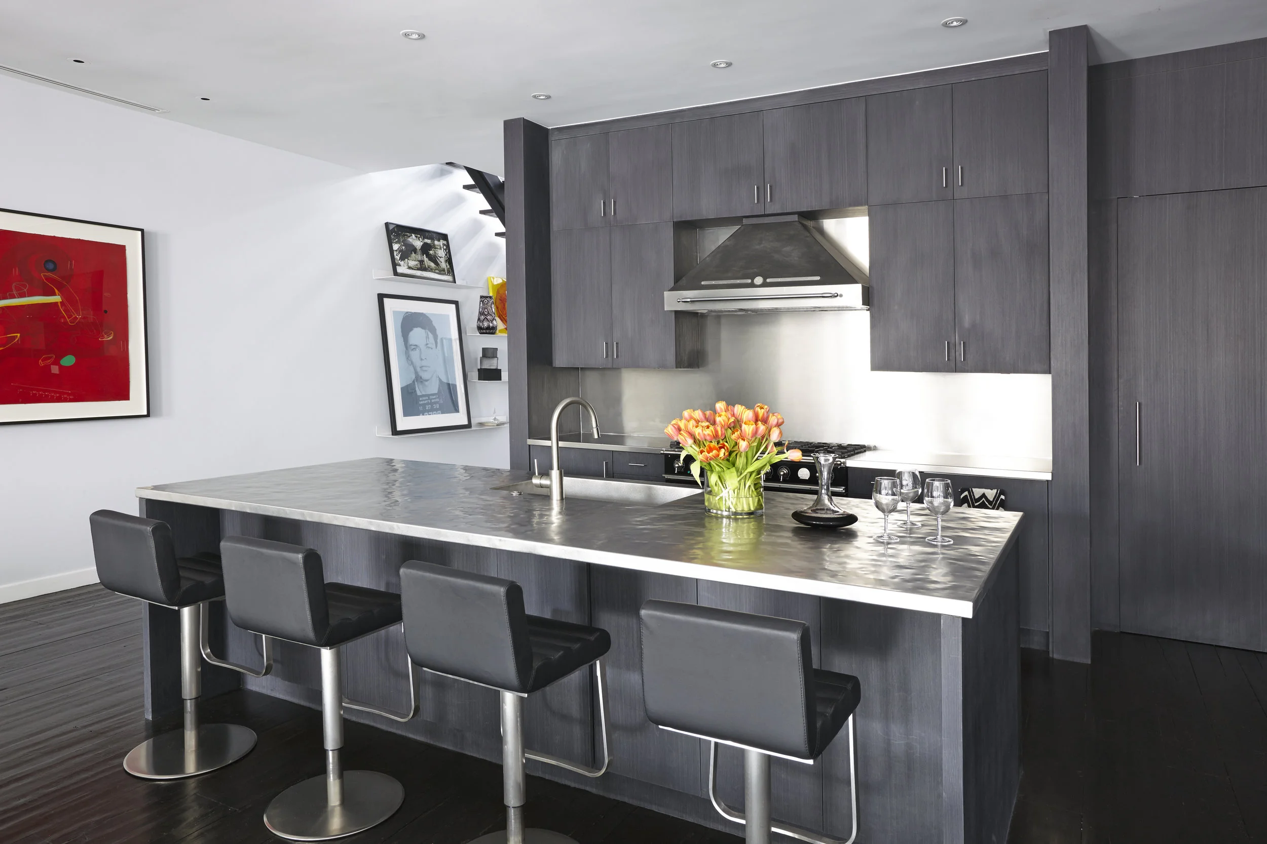 This apartment was a complete overhaul. Out went everything but the floors and the stairs. He wanted manly; she glitz. We think we found the perfect balance.